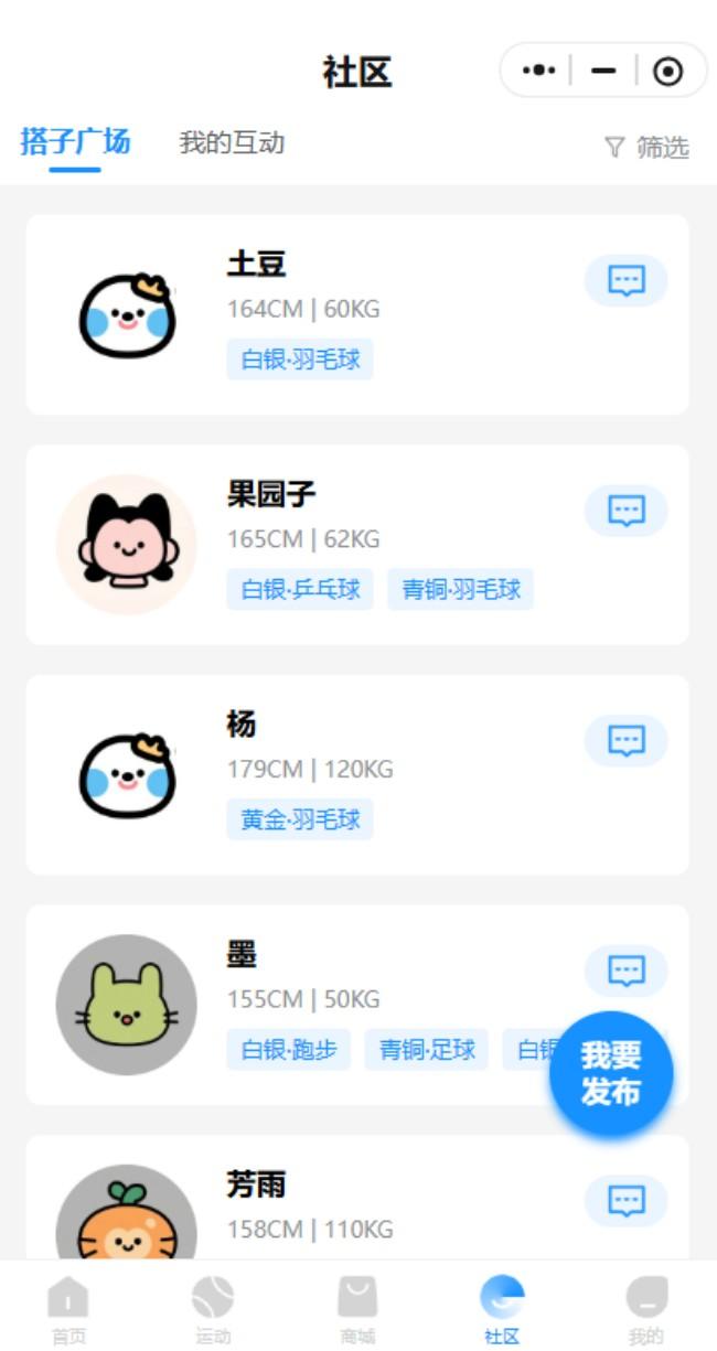 值得一提的是,该小程序创新融入社交属性,专门开设“运动搭子”功能。用户可根据自身喜爱的运动项目、技能水平、空闲时间及所在区域,发布需求或响应他人邀约,快速匹配志同道合的运动伙伴。这一功能有效解决了单人运动枯燥、难以坚持的痛点,以运动为纽带,拓展社交圈层,让健身锻炼更具趣味性和持续性。