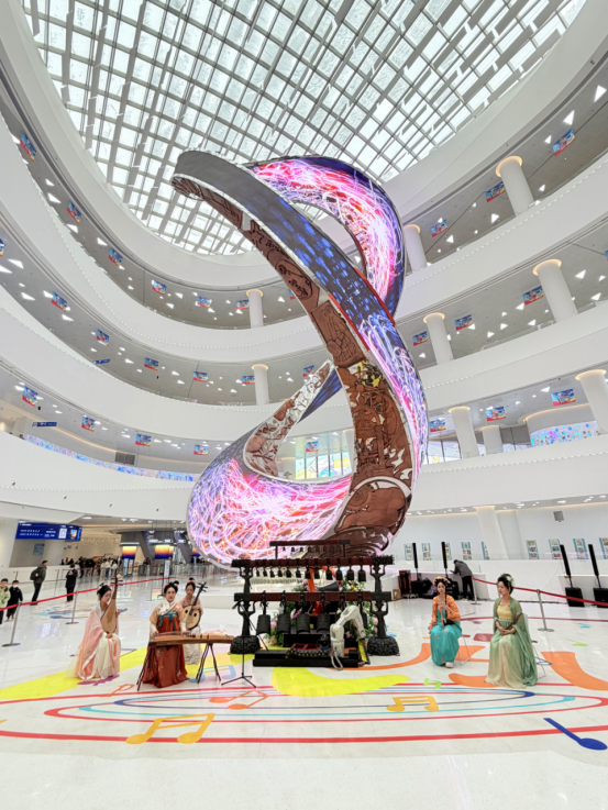 中央广播电视总台《中国科技创新盛典》同款“编钟AI机器人+陕西民乐团合奏”首次线下亮相,引发全场游客和观众的阵阵喝彩。该演出作为长安云周年庆活动的核心亮点之一,与科普实验秀、国潮NPC趣讲营城智慧、赛博霓裳舞蹈巡游、奇趣科技派对、机械仿生飞鱼表演、富平本土陶瓷科普等特色活动一起,为不同年龄段、不同需求的游客呈现一场融合科技和艺术的沉浸式科普大餐。