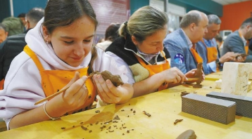 外国游客制作“兵马俑”兴趣浓